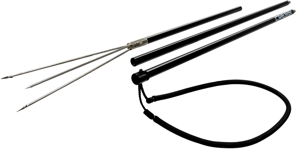 La lanza de aluminio es la solución perfecta para los cazadores que viajan. Las secciones livianas roscadas se rompen para caber en una bolsa de buceo típica y se pueden ensamblar rápidamente una vez en el sitio de buceo. Se incluye una punta "Lionfish Cluster" de cinco puntas y una banda de alimentación de alta calidad. Hay otros consejos disponibles como accesorios, no incluidos. El diseño modular de tres piezas se compone de dos longitudes iguales de 26 5/16 pulgadas (66,8 cm) y una sección de 19 7/8 pulgadas (50,5 cm). Incluye un grupo de 5 puntas (punta paralizadora) de 0,5 pies de largo. El largo total es de 6,5 pies (200 cm). El diámetro del poste es de 16 mm - 5/8 pulg.