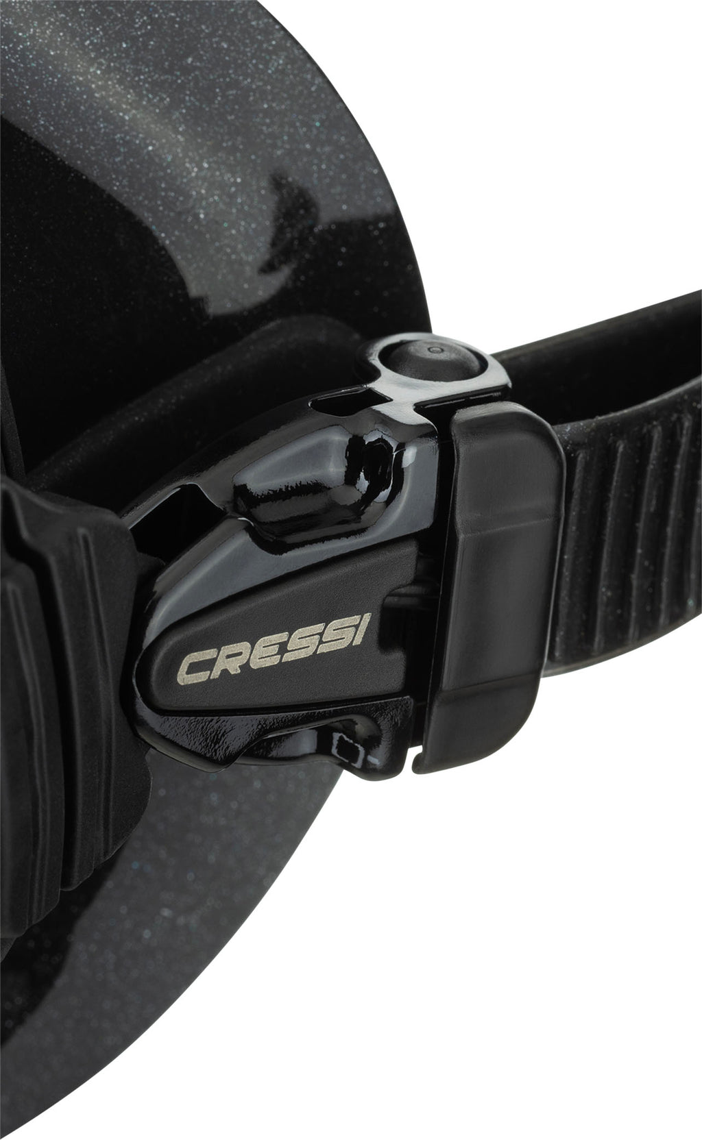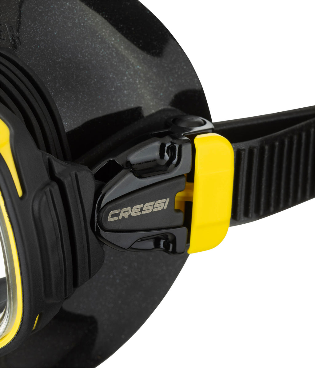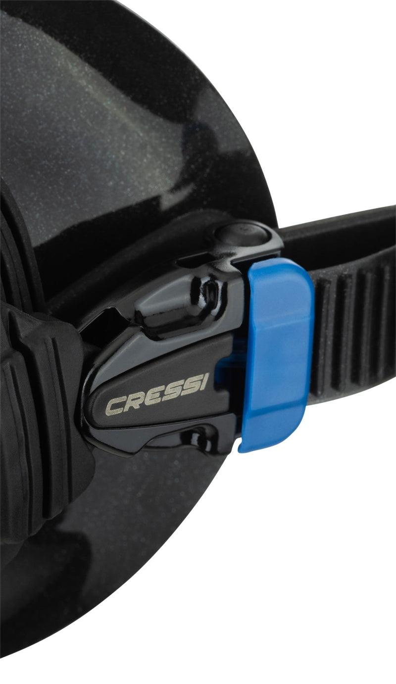 Este efecto reduce la temperatura interior de la máscara, acercándola a la temperatura exterior, y atrapa las gotas de humedad antes de que el aire llegue a las lentes, evitando así el empañamiento. Lo que hace única a la Prisma es su facilidad de ajuste: la hebilla de microajuste está conectada a un punto de conexión suave en la montura, lo que permite ajustar la tensión de la correa de forma fácil y suave sin deformar el faldón, lo que a menudo provoca la entrada de agua. Gracias a la combinación de dos materiales diferentes en la montura y al innovador diseño de faldón suave patentado por Cressi, la máscara se pliega fácilmente para guardarla en el chaleco o en el bolsillo de carga.