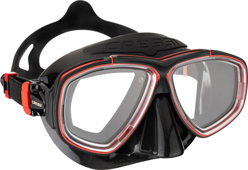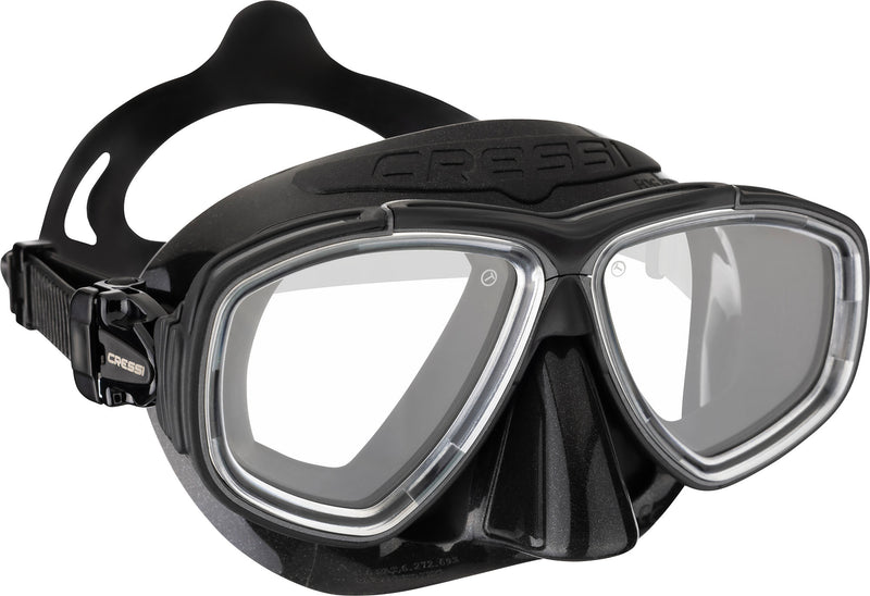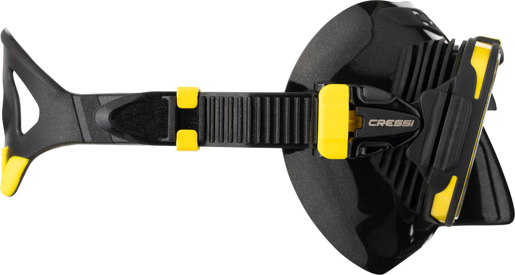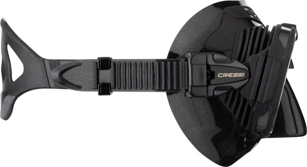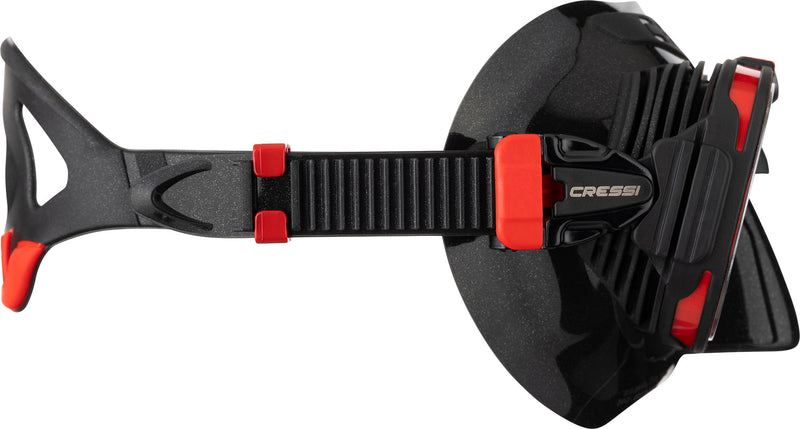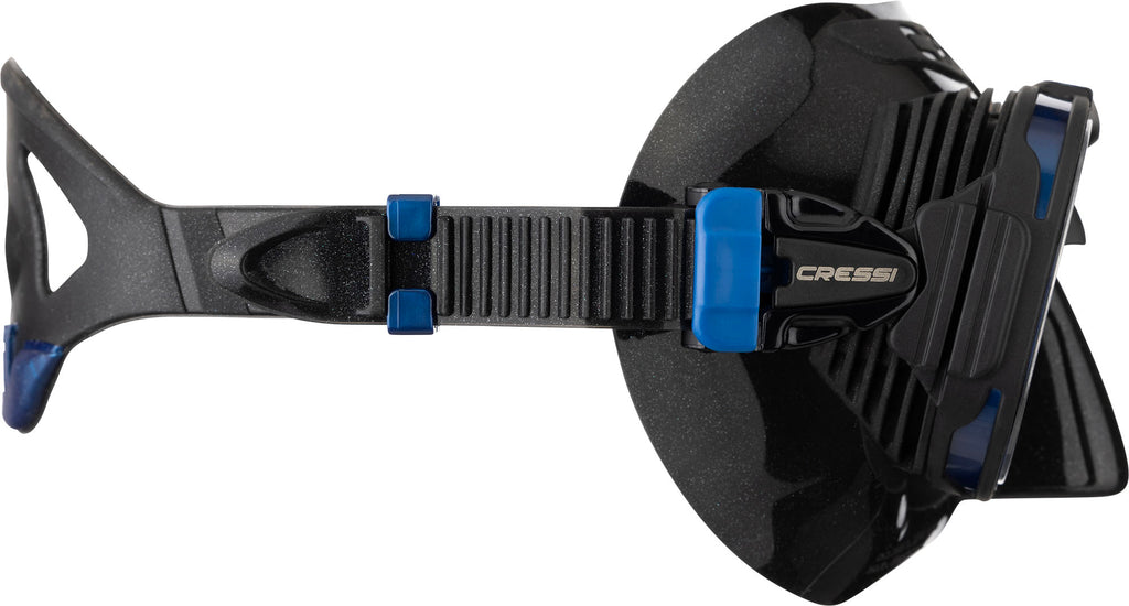 Este efecto reduce la temperatura interior de la máscara, acercándola a la temperatura exterior, y atrapa las gotas de humedad antes de que el aire llegue a las lentes, evitando así el empañamiento. Lo que hace única a la Prisma es su facilidad de ajuste: la hebilla de microajuste está conectada a un punto de conexión suave en la montura, lo que permite ajustar la tensión de la correa de forma fácil y suave sin deformar el faldón, lo que a menudo provoca la entrada de agua. Gracias a la combinación de dos materiales diferentes en la montura y al innovador diseño de faldón suave patentado por Cressi, la máscara se pliega fácilmente para guardarla en el chaleco o en el bolsillo de carga.