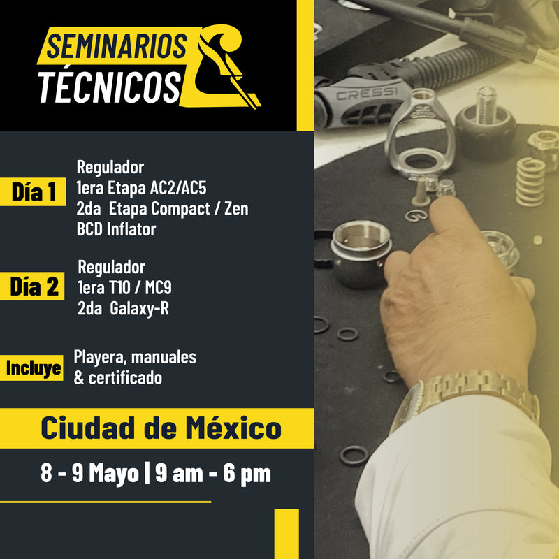 Explora en detalle nuestros principales reguladores y mejora tu experiencia de buceo. En el Día 1, tendrás la oportunidad de conocer a fondo la 1ª etapa AC2 | AC5 y la 2ª etapa Zen | Compact, así como el BCD inflator, con un enfoque práctico para comprender su funcionamiento y características.